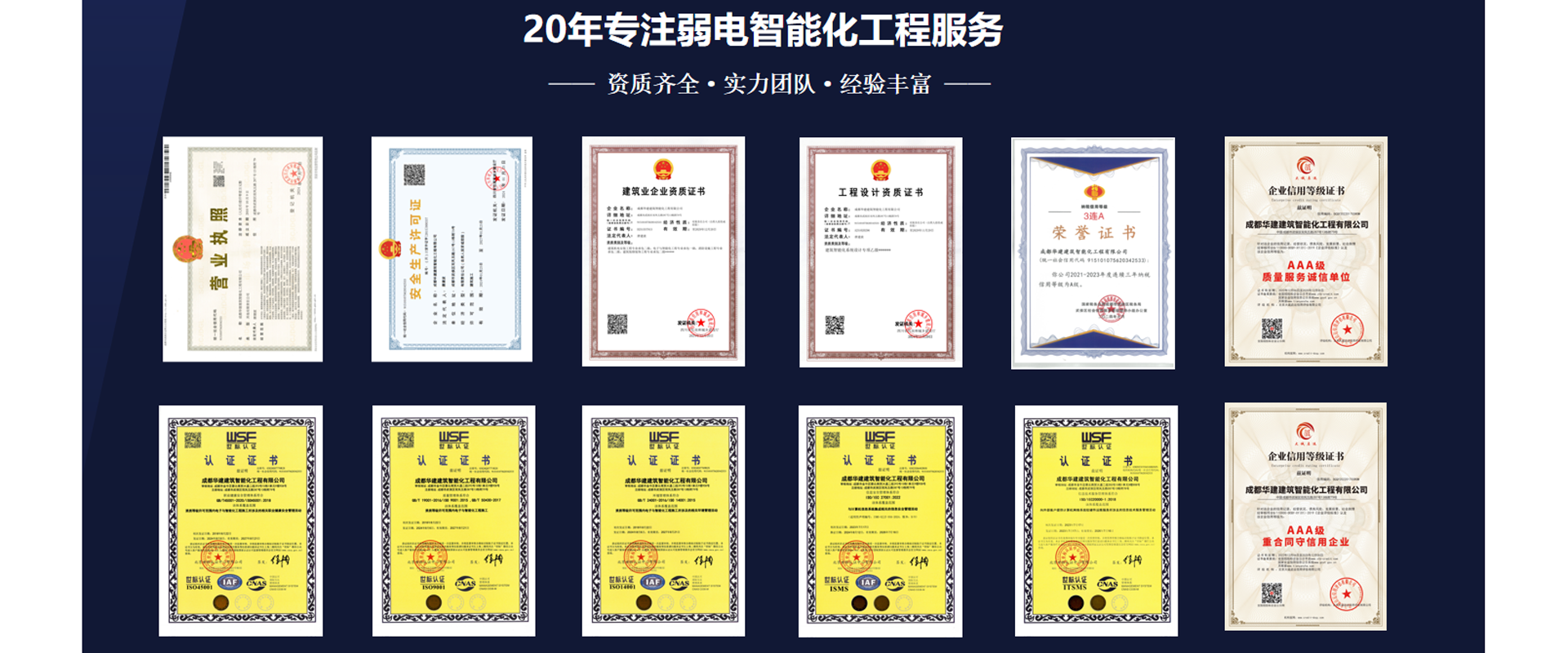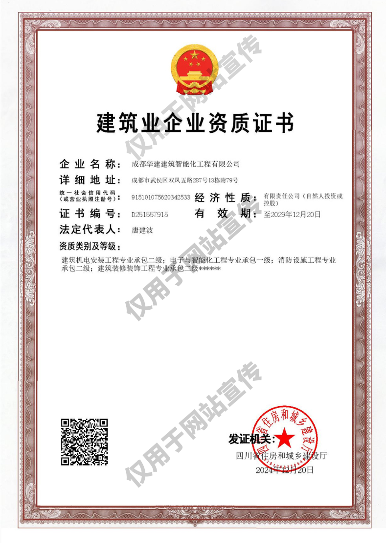 成都華建建筑智能化工程有限公司,19年專注弱電智能化工程、消防工程、建筑機電安裝工程的專業(yè)公司,具備電子與智能化工程、消防設(shè)施工程、建筑機電安裝、建筑裝修裝飾、建筑智能化設(shè)計等相關(guān)30余項資質(zhì)及證書。設(shè)計、施工和維保一站式服務(wù),多行業(yè)中大型成功交付案例。…